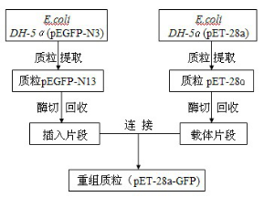 Fig.1  The formed technological process of pET-28a-GFP recombined plasmid