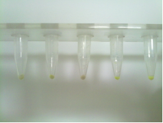 2)  離心,使溶液聚集在管底部。