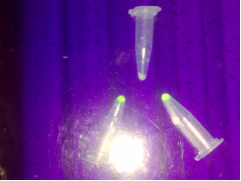 Abstract: Objective:Studies indicated that the cloning and expression of the GFP gene in the E.coli.  Methods: Extract the plasmid of the DH-5α(pEGFP-N3) and DH-5α (pET-28a). Then cutting by enzyme and connecting the two plasmids to form pET-28a-GFP recombined plasmid. The recombinant plasmid confirmed by restriction enzyme and PCR transfected into E.coli DH-5α  to ensure the expression of green fluorescent protein. Guiding the recombined plasmid, which contains exogenous genes of GFP into E.coli for expression, through transformative method. The expression of GFP gene can be induced by the IPTG and then we can see green. Results: The results suggest that pET-28a-GFP recombined plasmid has successfully expressed in E.coli.